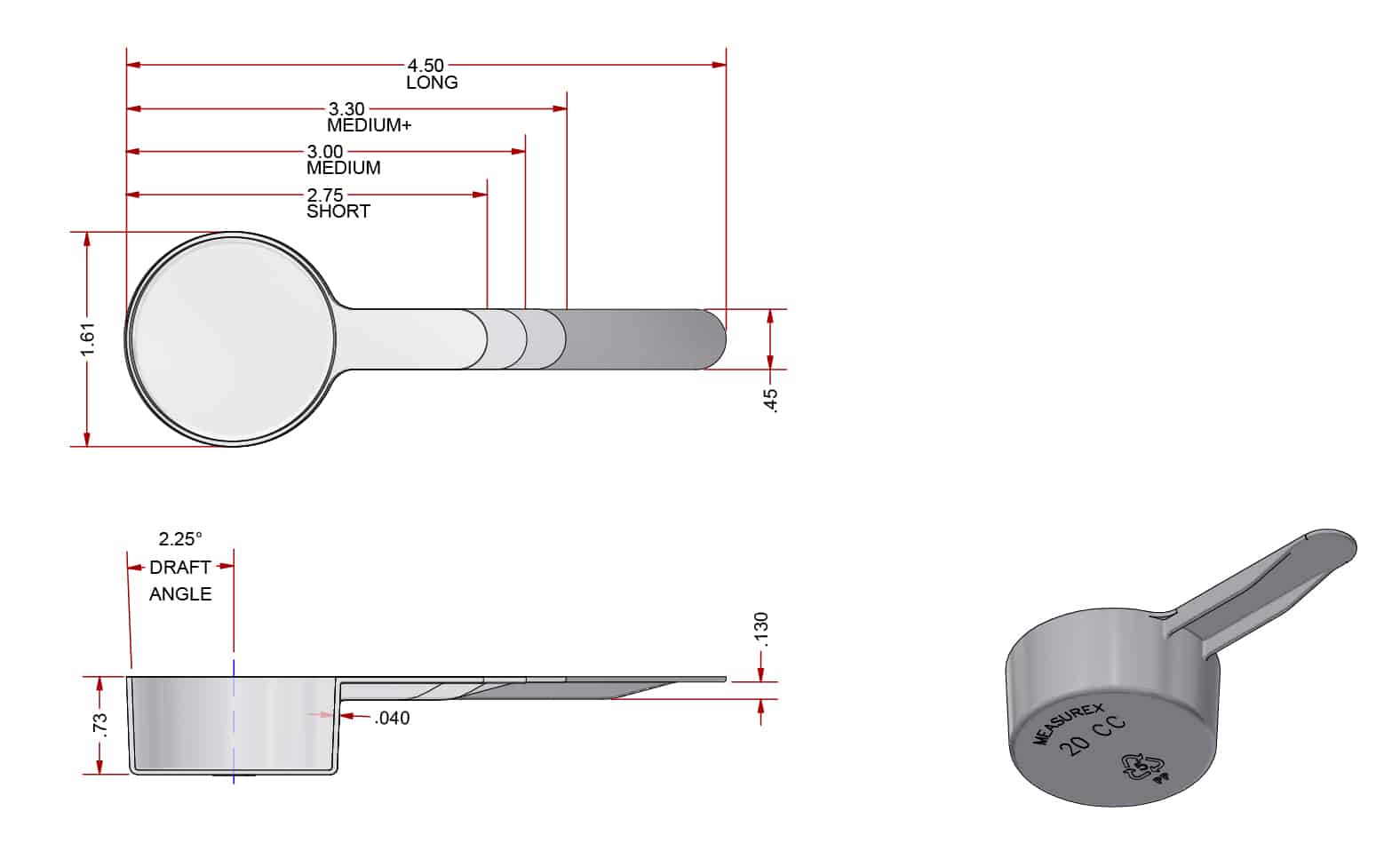 | 4 Overall Lengths | 2.75″ | 3.0″ | 3.3″ | 4.5″ |