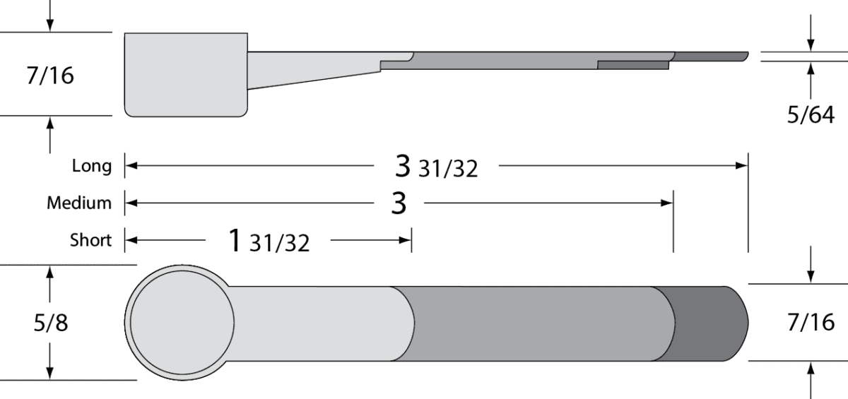 | 3 Overall Lengths | 1.97″ | 3.0″ | 3.97″ |