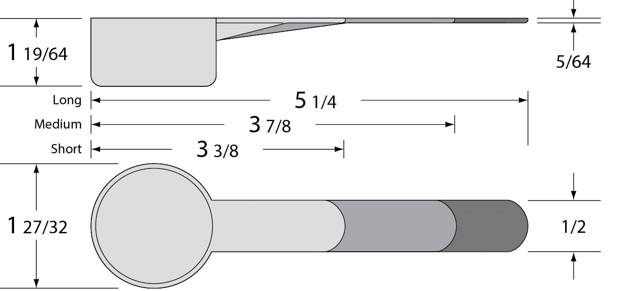 3 Overall Lengths 3 3/8″ 3 7/8″ 5 1/4″