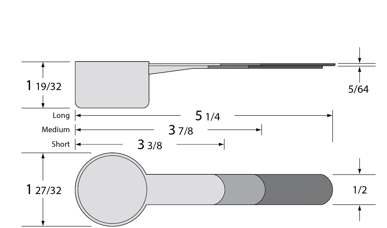| 3 Overall Lengths | 3 3/8″ | 3 7/8″ | 5 1/4″ |