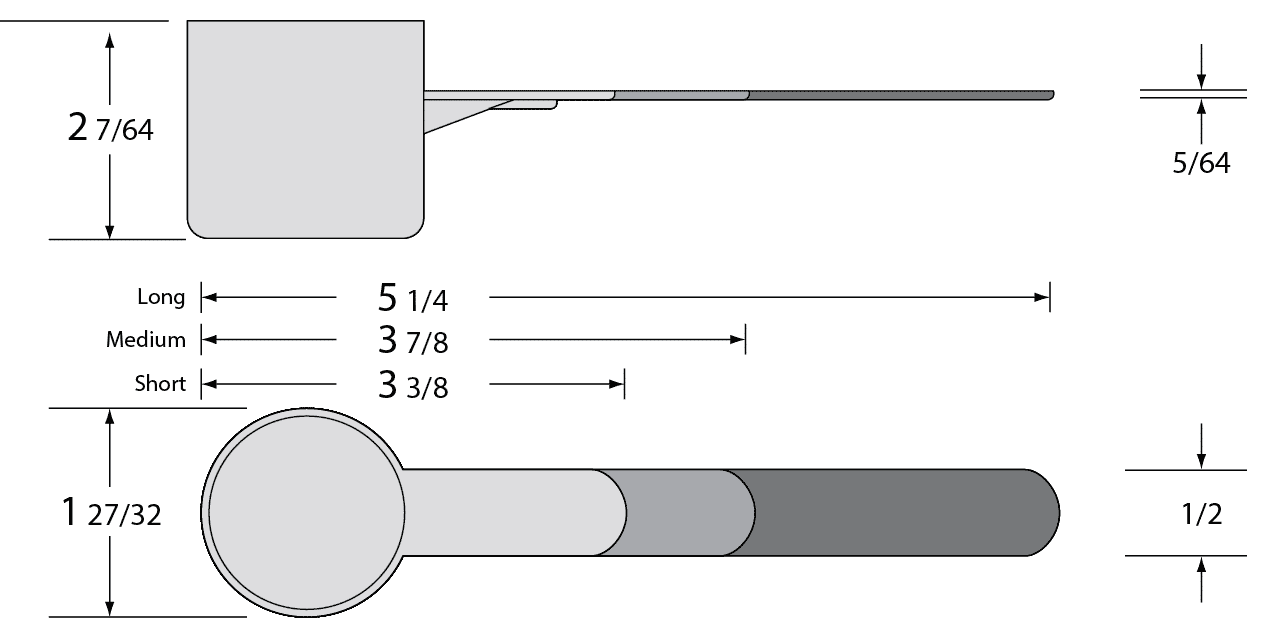 3 Overall Lengths 3 3/8″ 3 7/8″ 5 1/4″